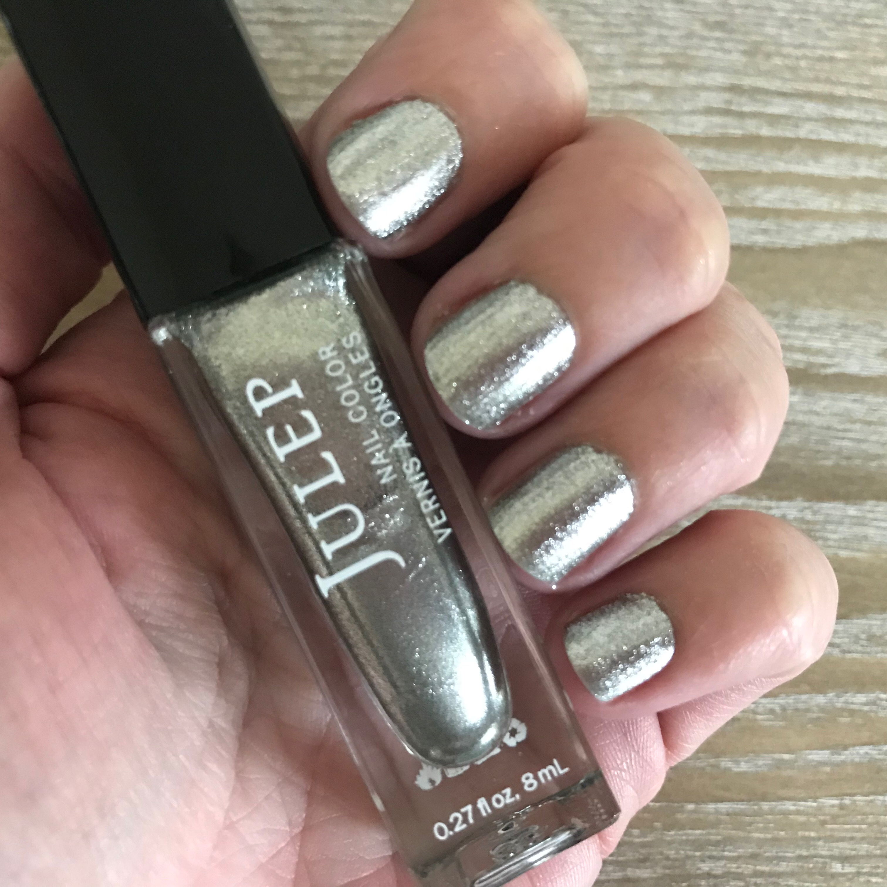 This is more of a soft champagne gold color, not as sparkly as the Julep, but more metallic. This one takes two coats and is a little bit streaky when applied, but it’s a beautiful gold color that goes with everything!