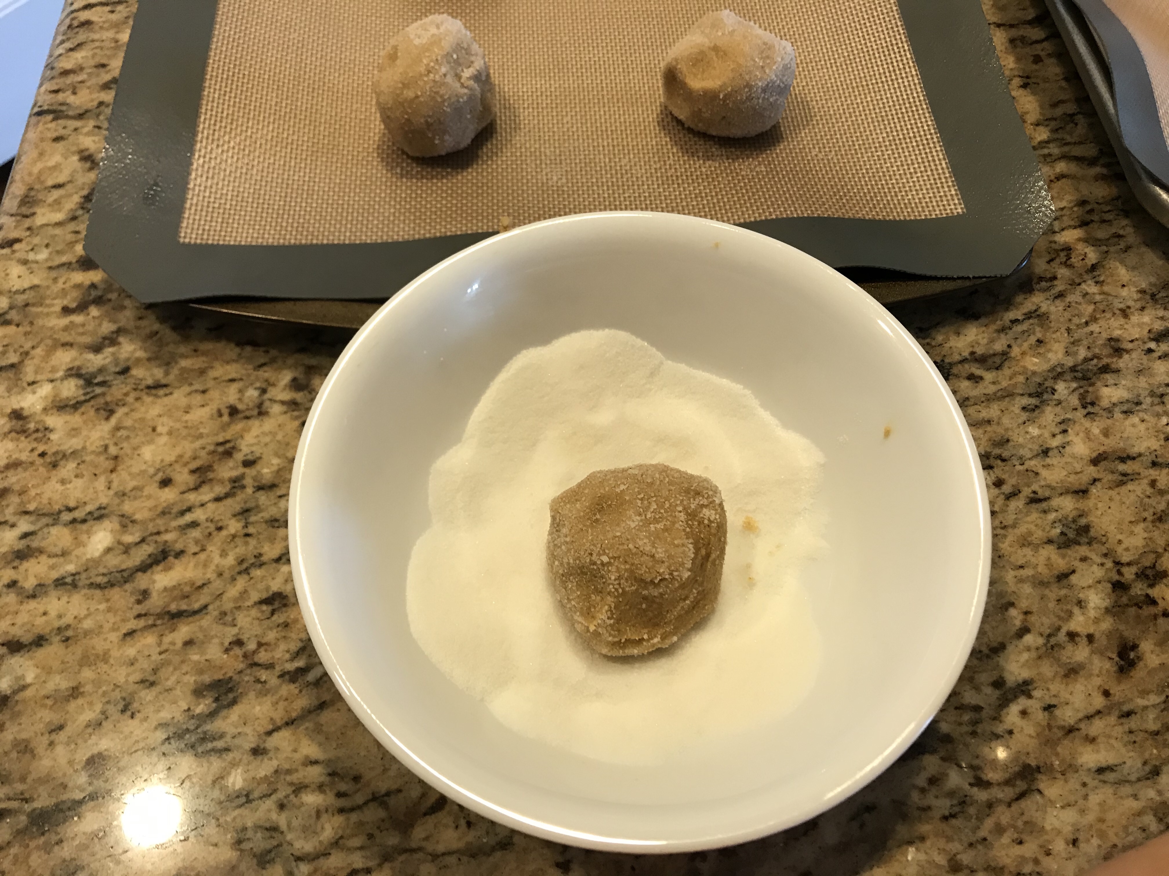 Roll into balls and coat in sugar.