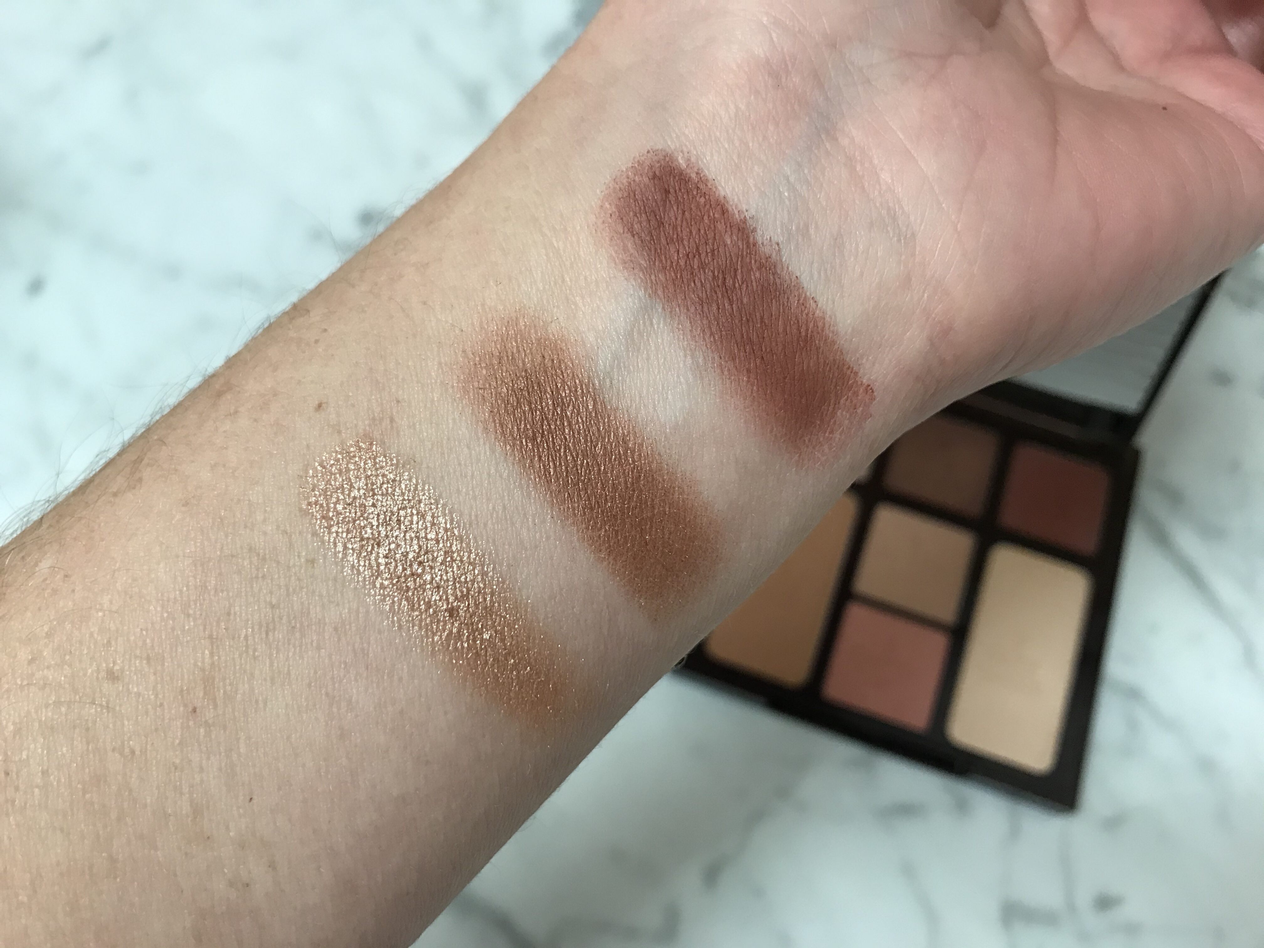 The last shade is a matte warm brown color. It almost has a bit of burgundy to it. This shade is so good in the crease and creates a really smoky look.