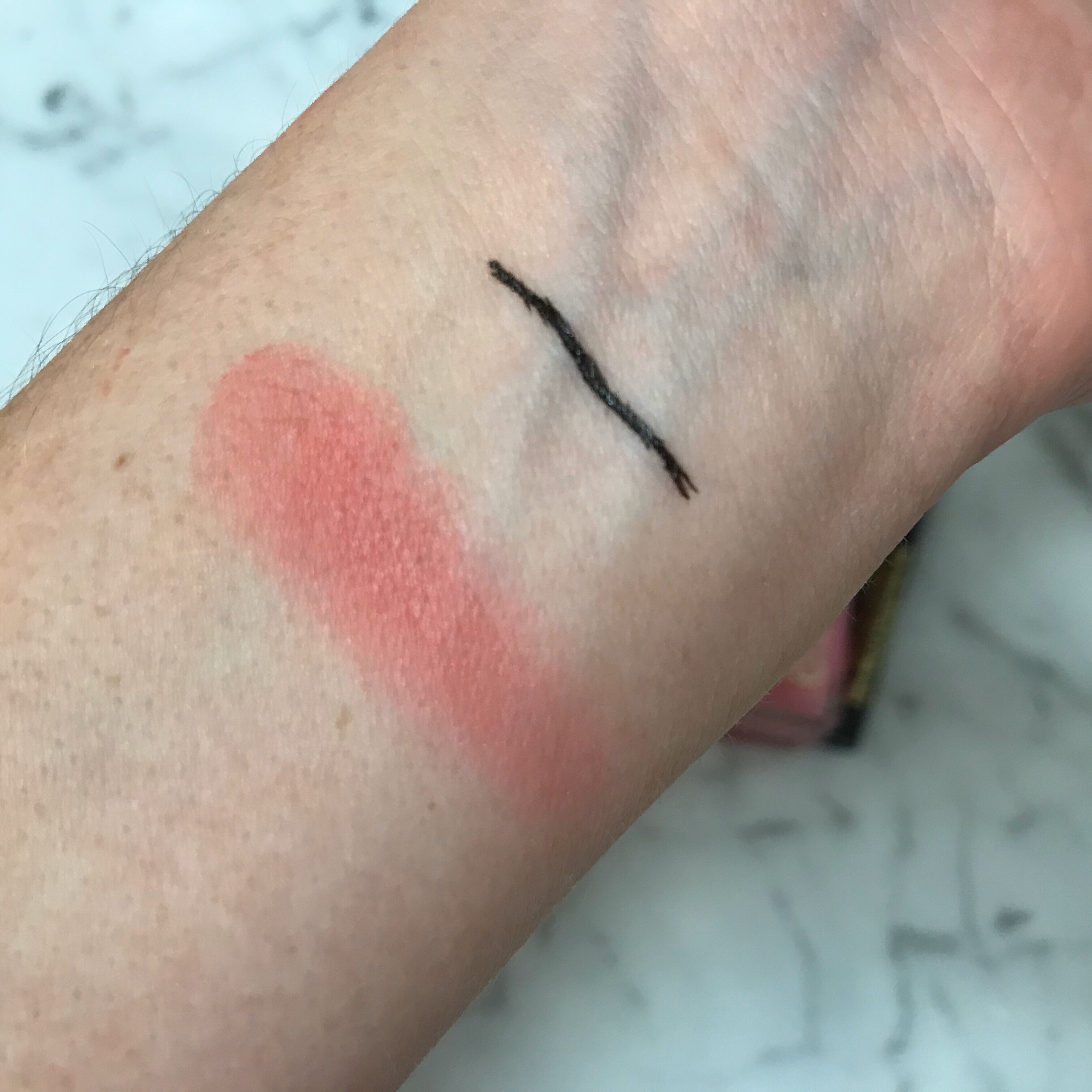 Next, a matte rosy blush color from Clinique called Rosy Pop. I love this line of blush colors. They are so pretty, long wearing, and I love the packaging. Here is a swatch.