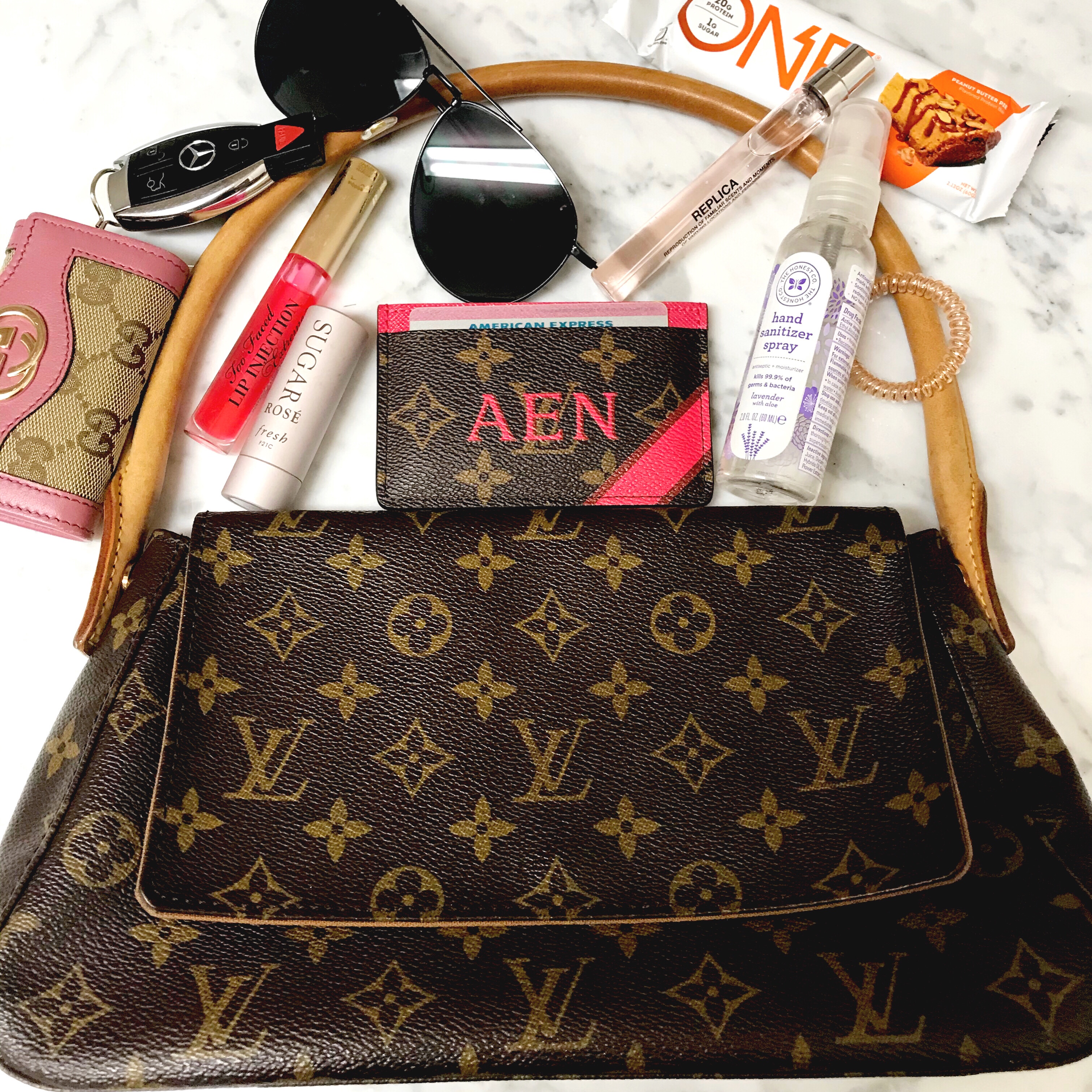 I am currently using my VINTAGE Louis Vuitton Mini Looping Bag in the monogram canvas. This bag was given to me by my husband about 12 years ago for our anniversary. It was actually my second LV bag that he got me, the first being the Speedy 25 in the Damier Azur canvas. I have a What’s In My Speedy post if you want to check it out HERE.