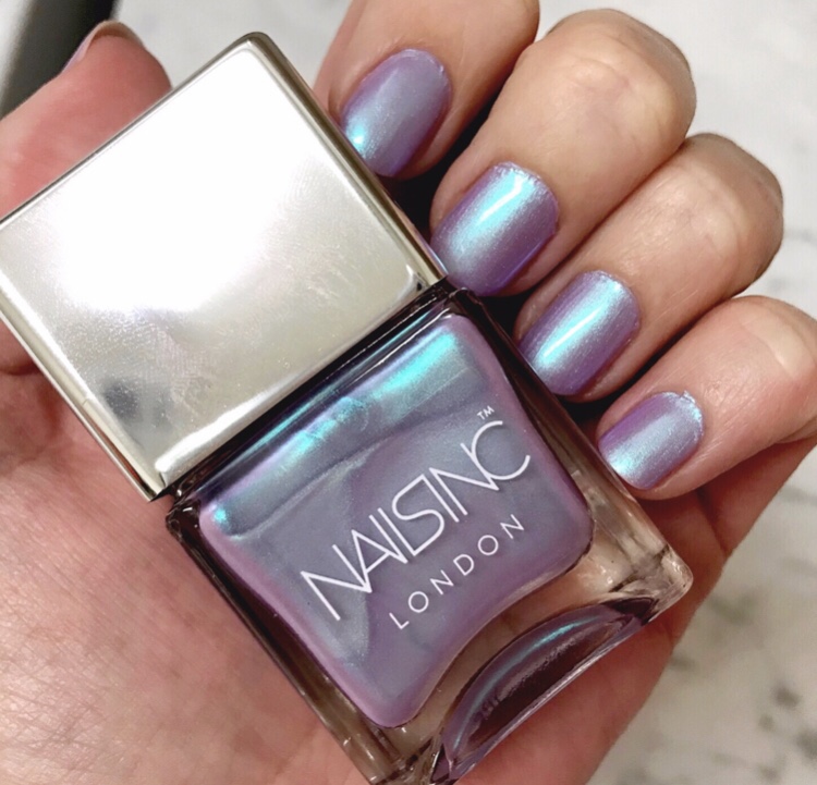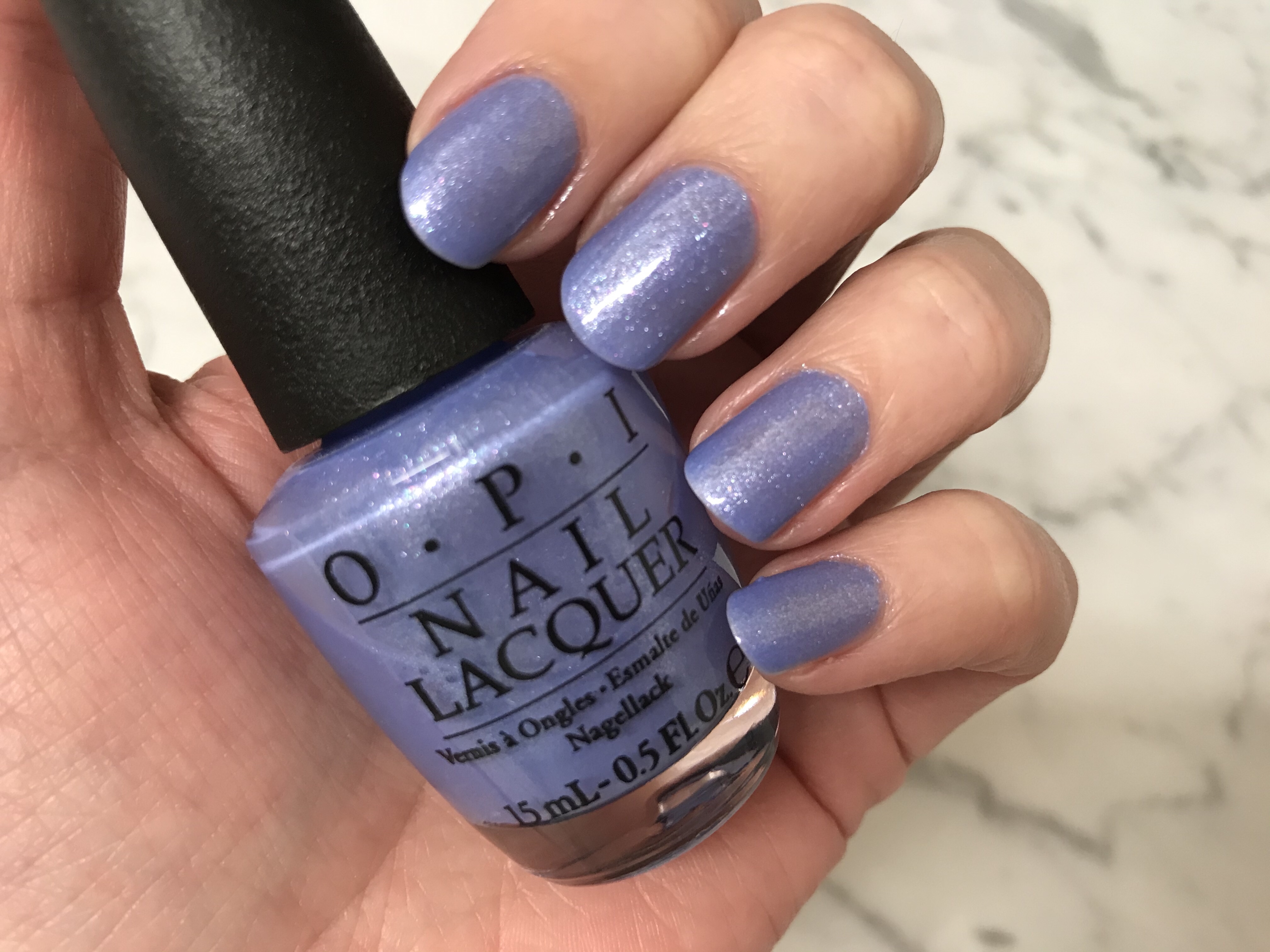 This color is a shimmery periwinkle that is GORGEOUS in person. This color is also a bit sheer, so I have three coats on here.