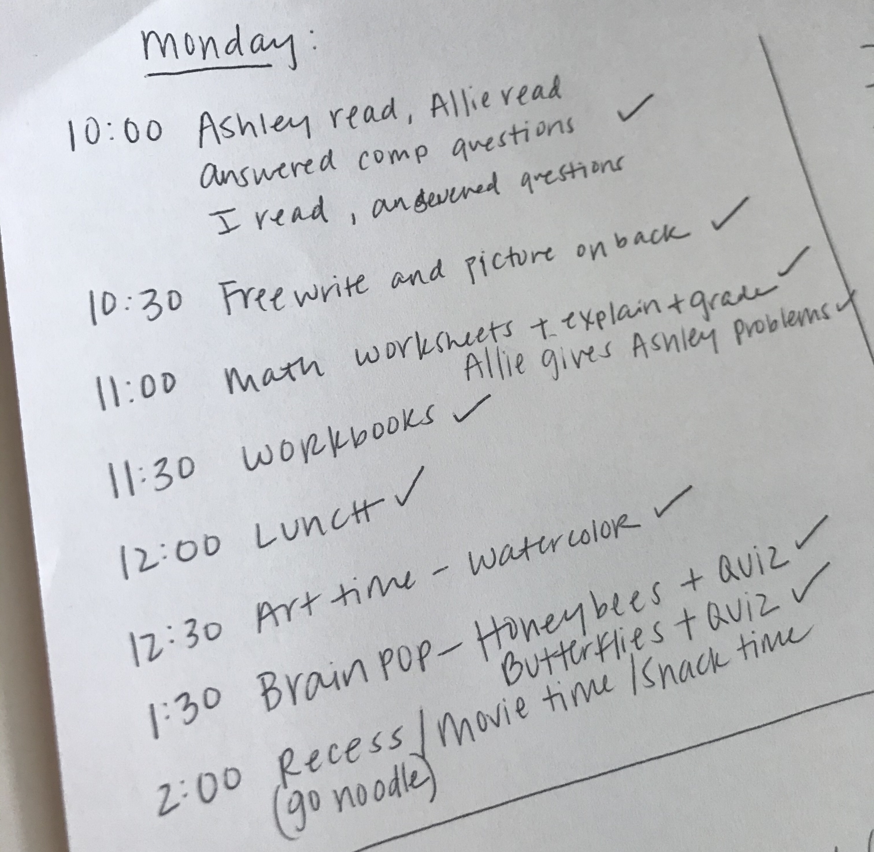 At 10 am school starts. I’ve made time blocks for the different subjects/activities for us to do.