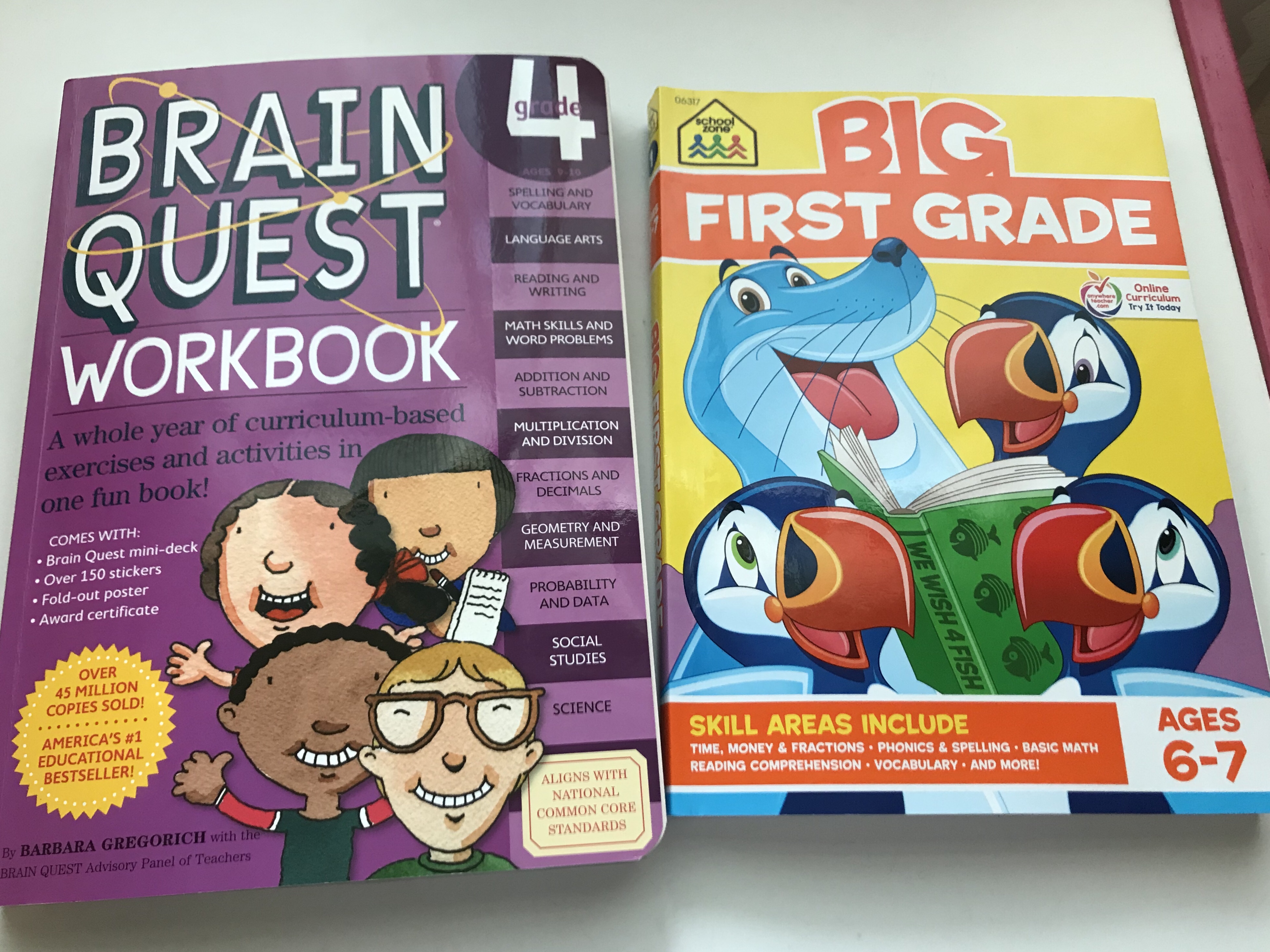 I have workbooks for them to do that are full of all kinds of worksheets and activities. I get one grade level up from the grade they are in so that they are challenging. The girls love doing these.