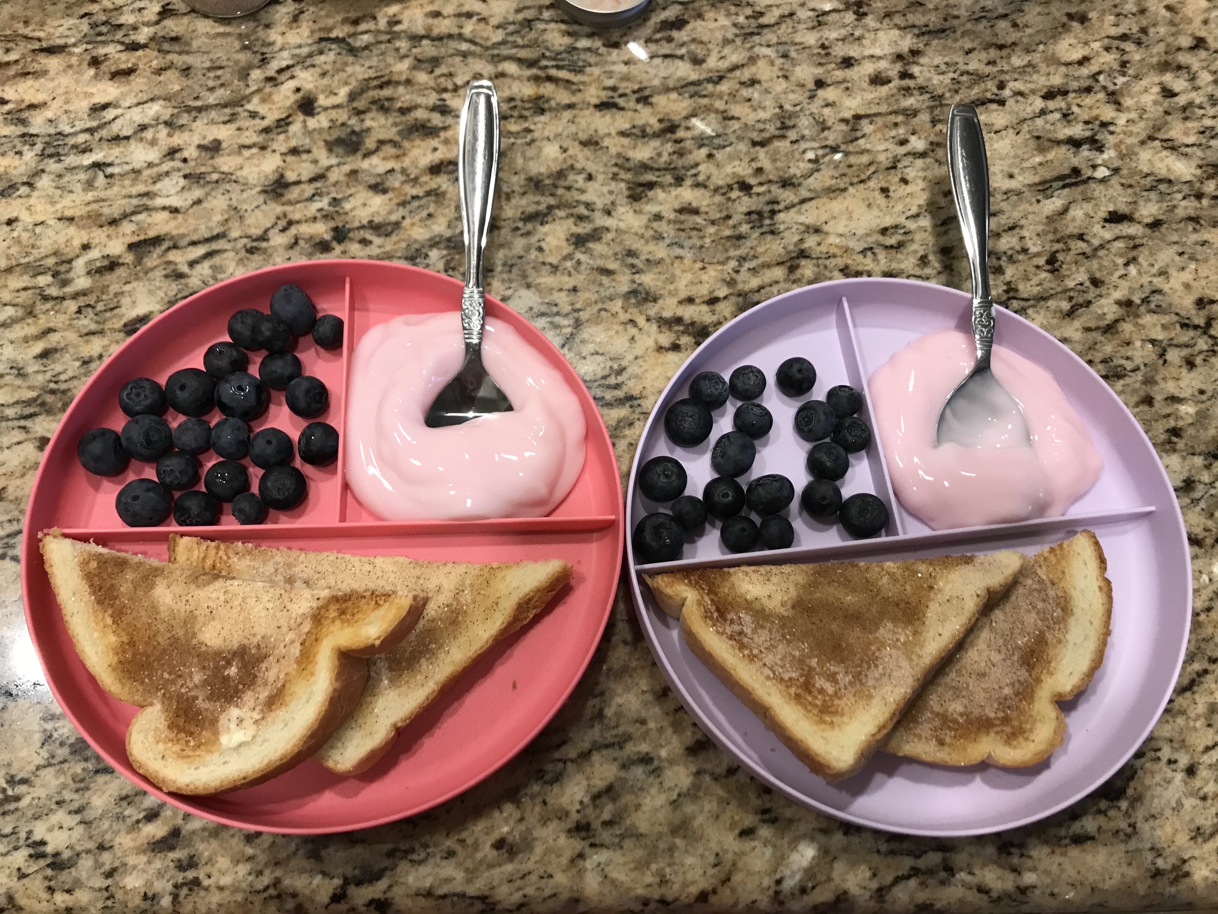 8:00 The girls woke up around 8, so I made them cinnamon toast, and they had some berries and yogurt to go with it.