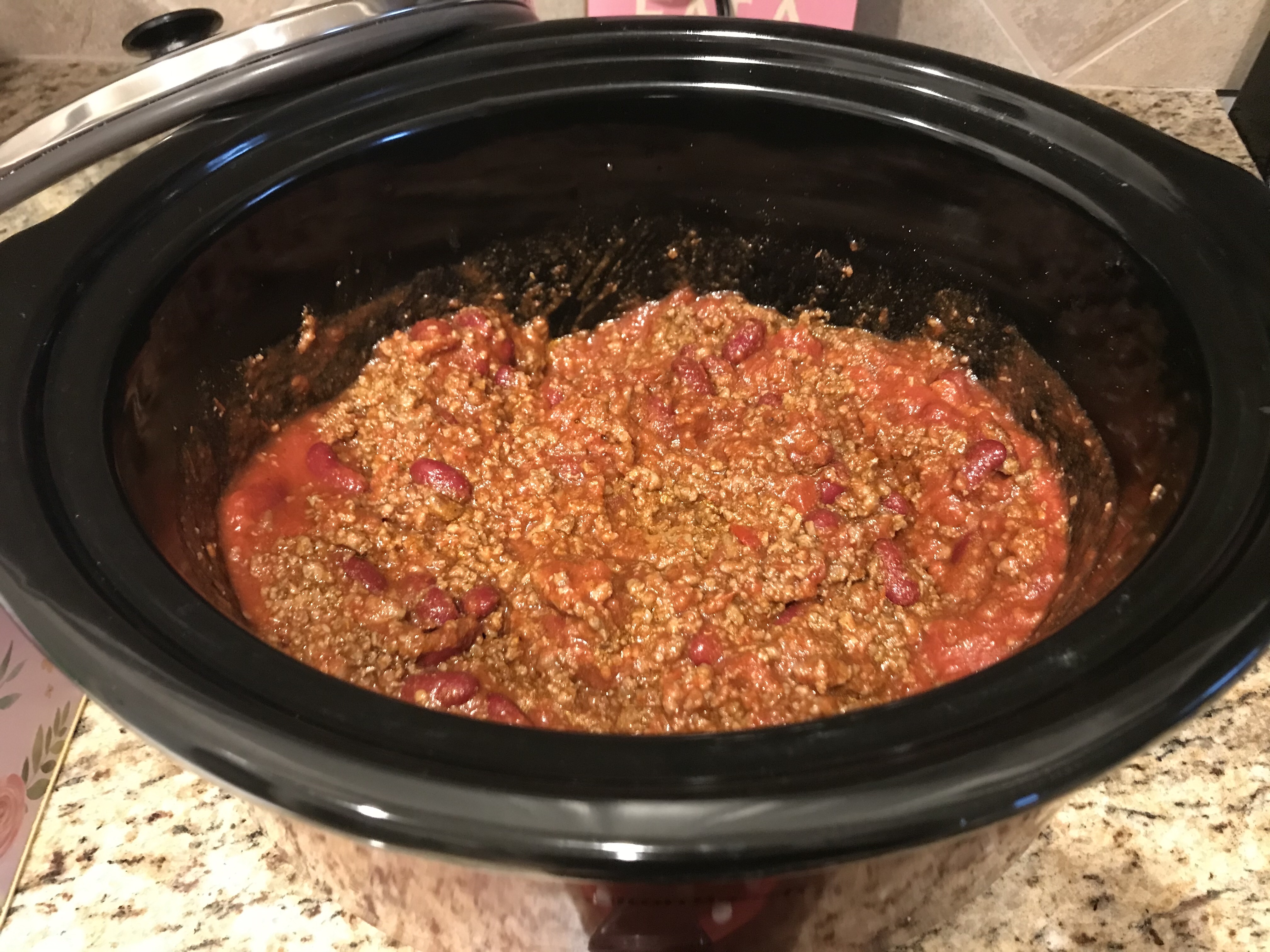 I planned on making chili for dinner that night, so I had to get that going in the crockpot. Here is the recipe if you want to make it!