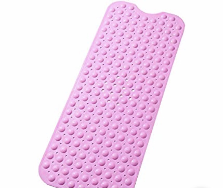 Next is this extra long non-slip bath mat. It is fun and pink, and it covers every inch of the bathtub so they don’t slip while showering. It is also very easy to clean.