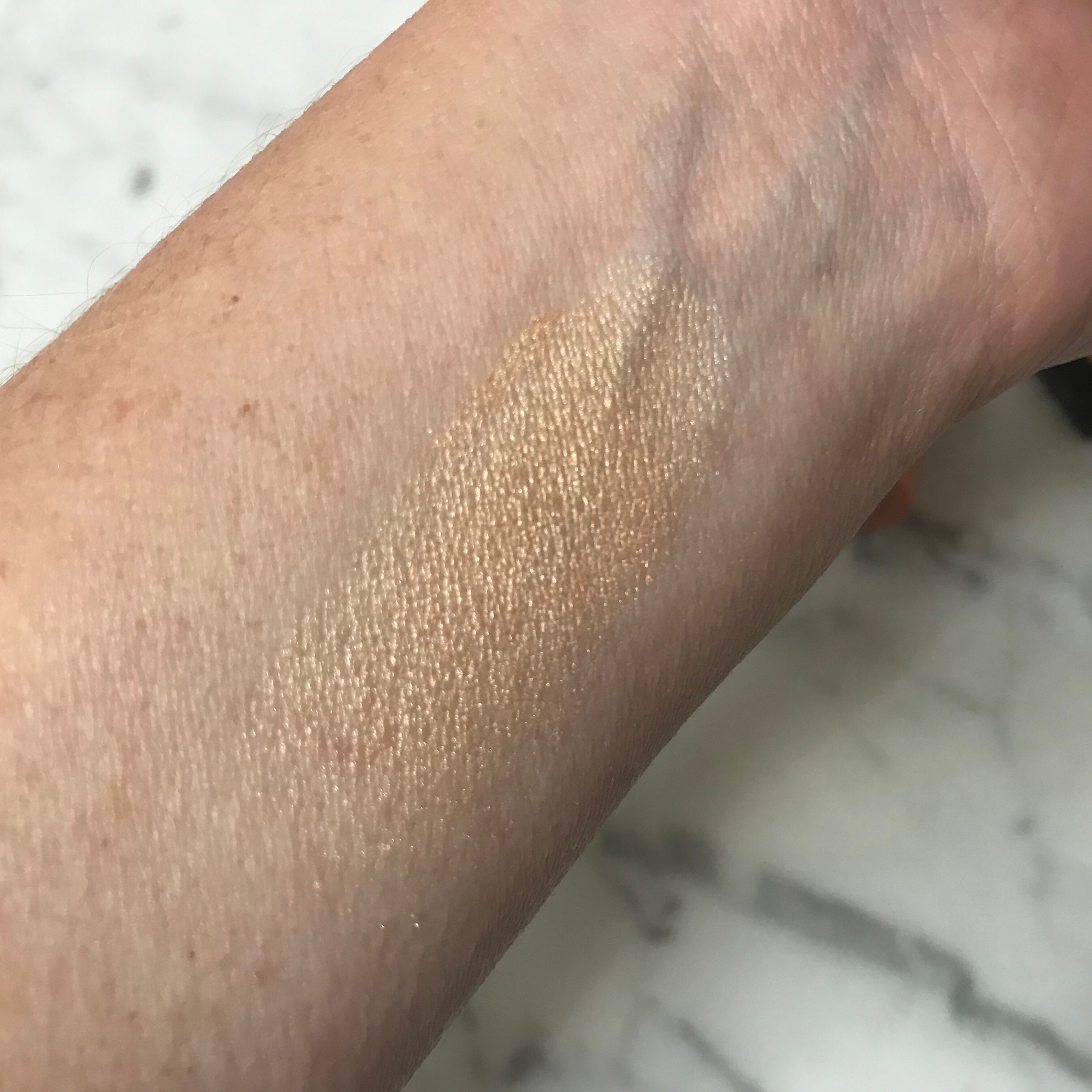 It is the prettiest peachy pink color with a golden sheen. I love the packaging and how small it is. Perfect for travel. I want all of the other colors! $4 at ULTA.