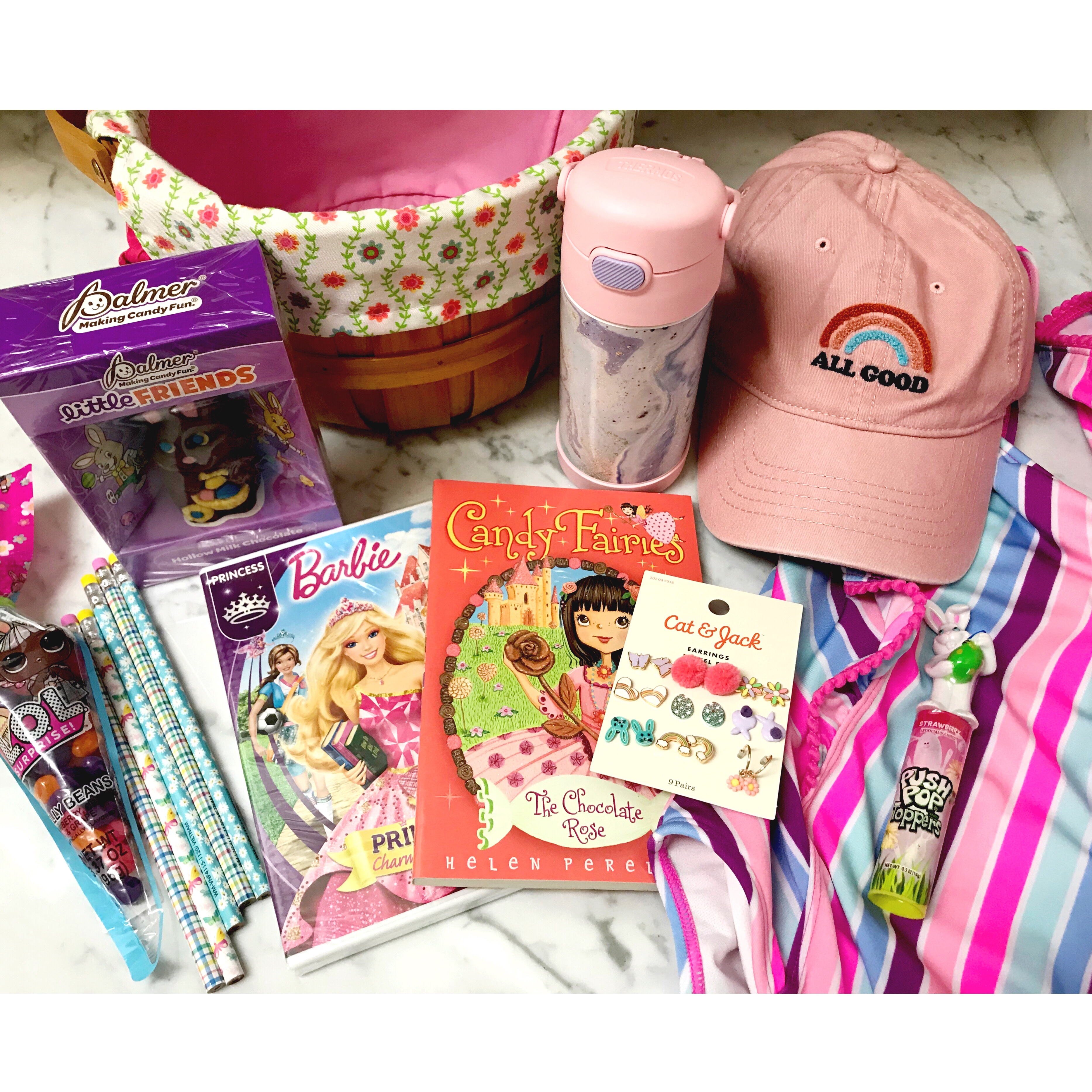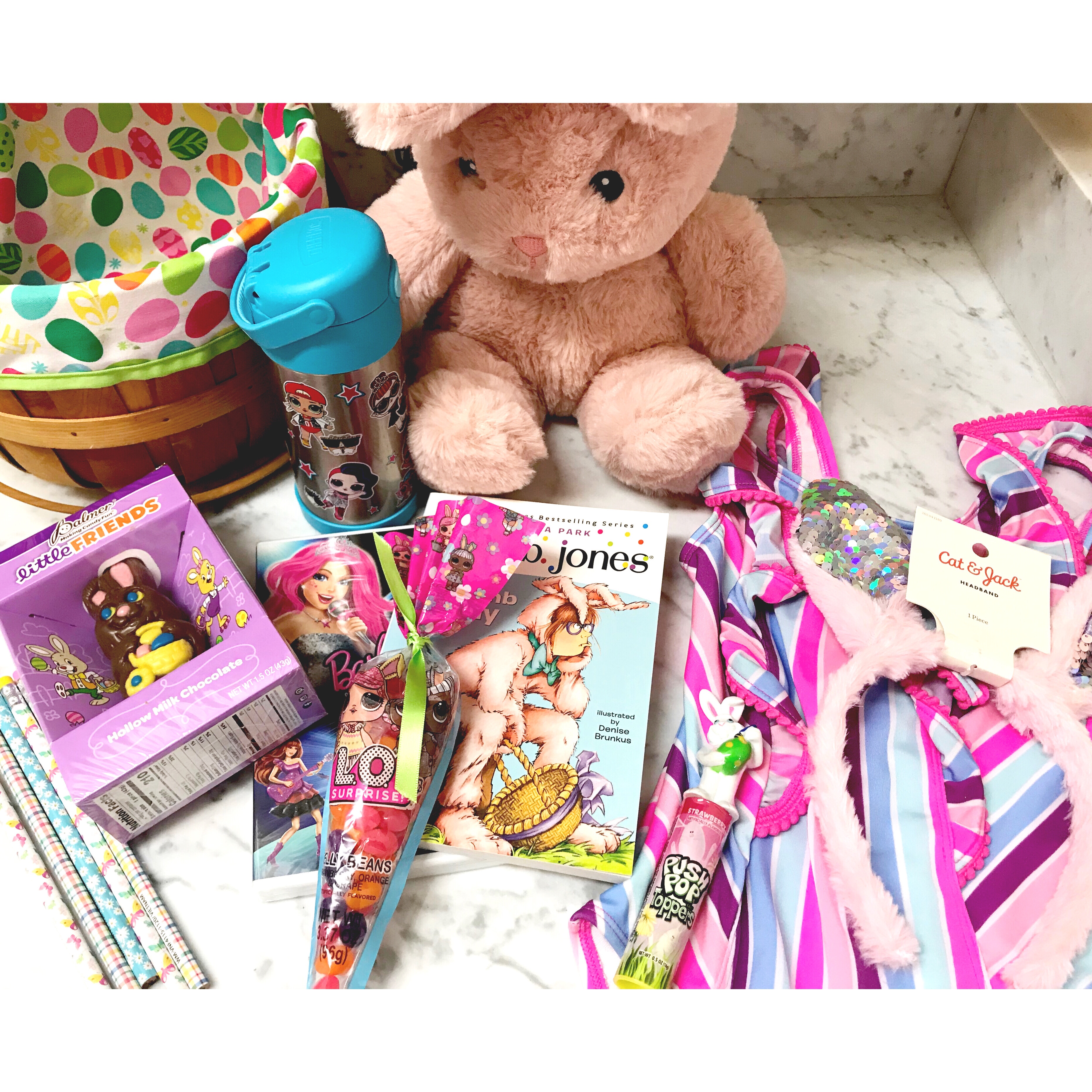 I also got them some floral springtime themed pencils, a strawberry push pop with a bunny on top, a chocolate bunny, and a package of LOL Surprise jelly beans.