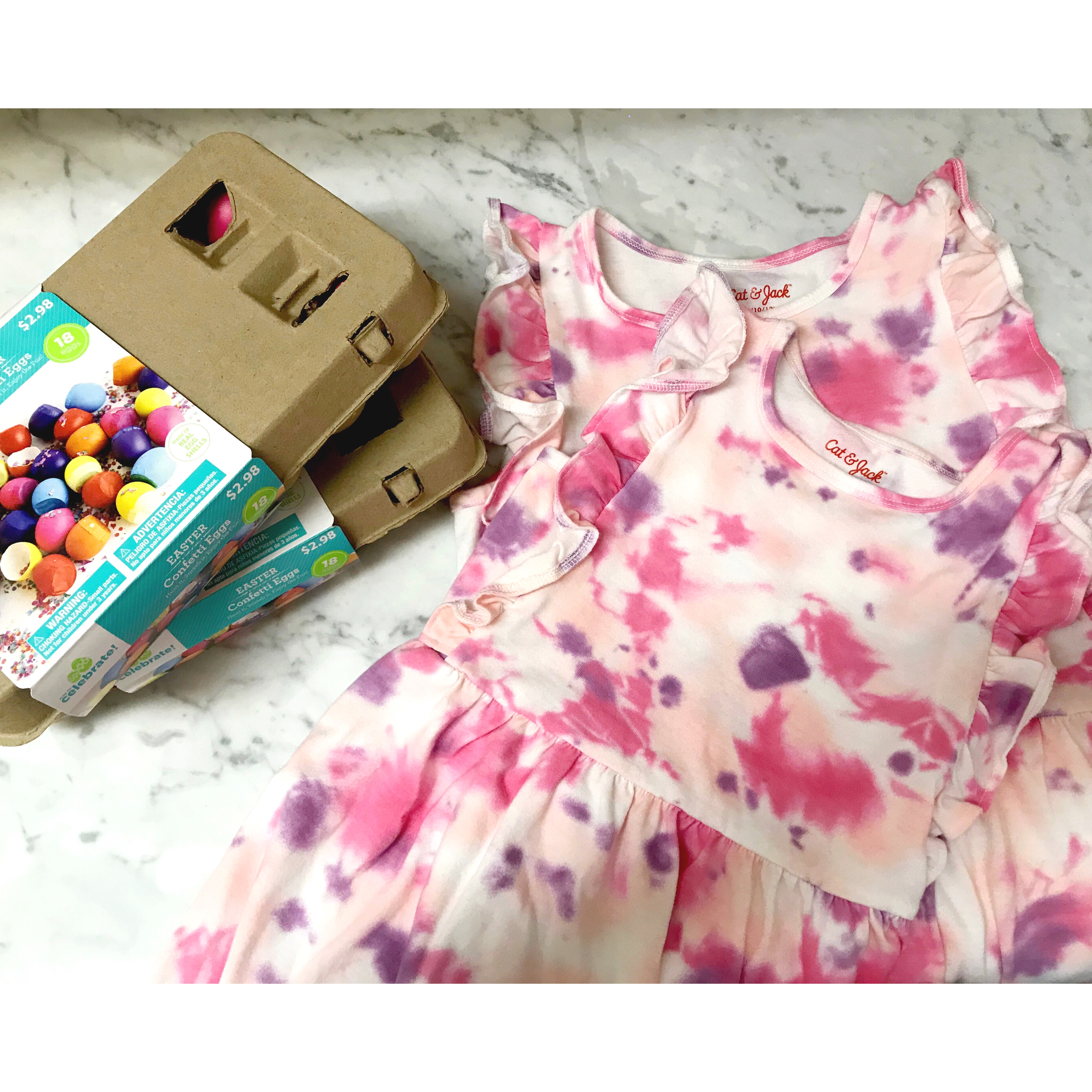 I also bought them these matching tie dye dresses (they love to match) and some confetti eggs to put out with their baskets.