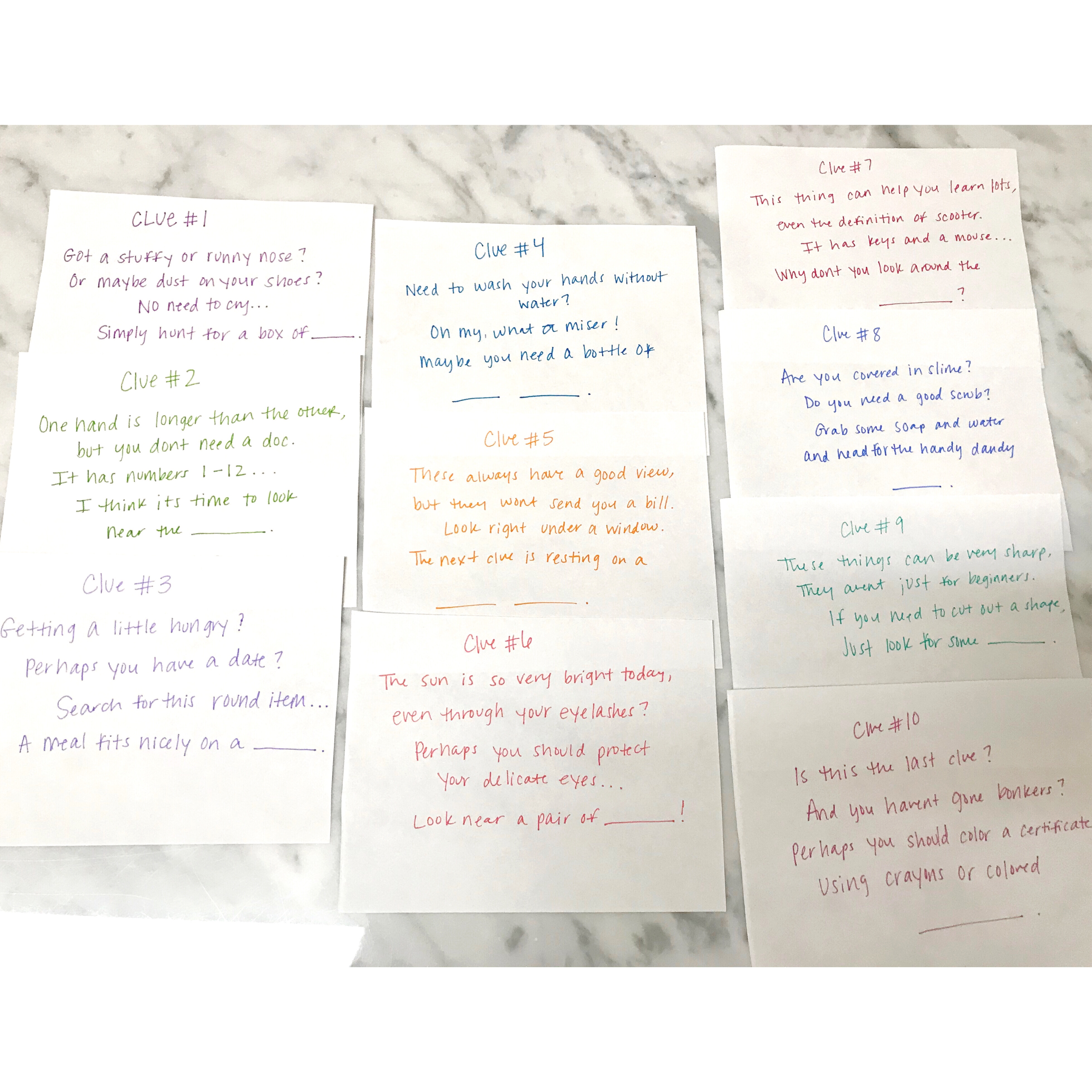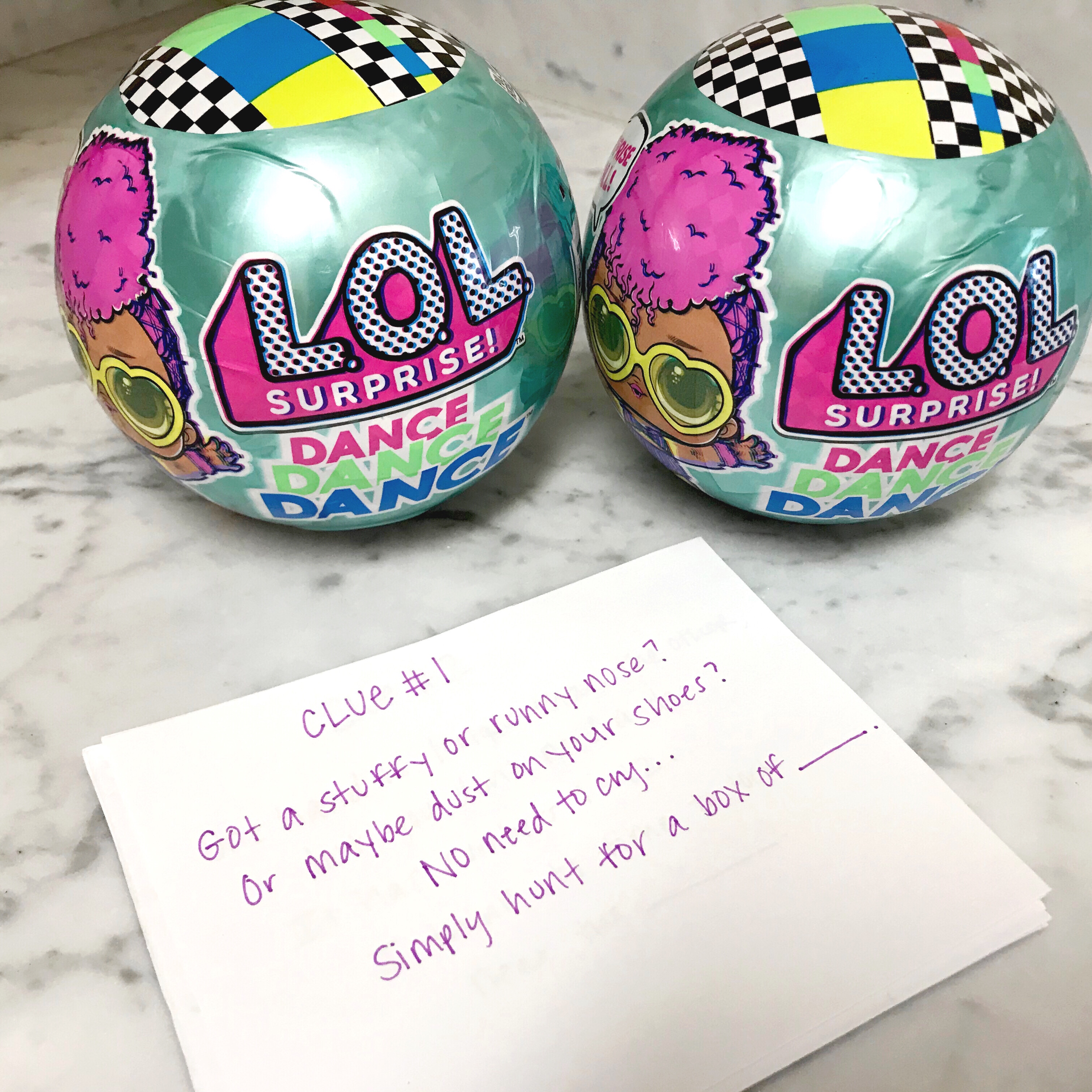 I hide all of these clues around the house and then at the end it will lead them to one of these LOL Surprise dolls. They LOVE these and collect them, so I know they will be really happy.