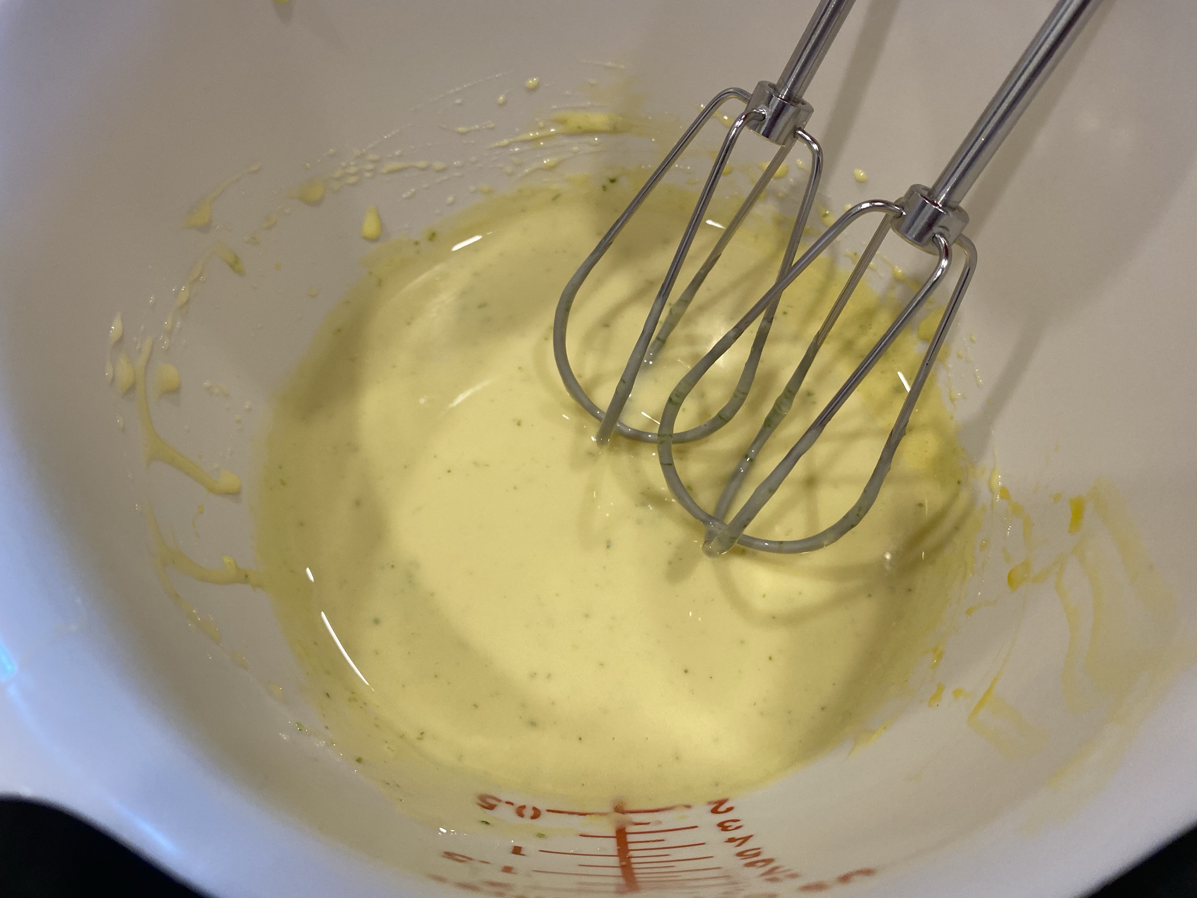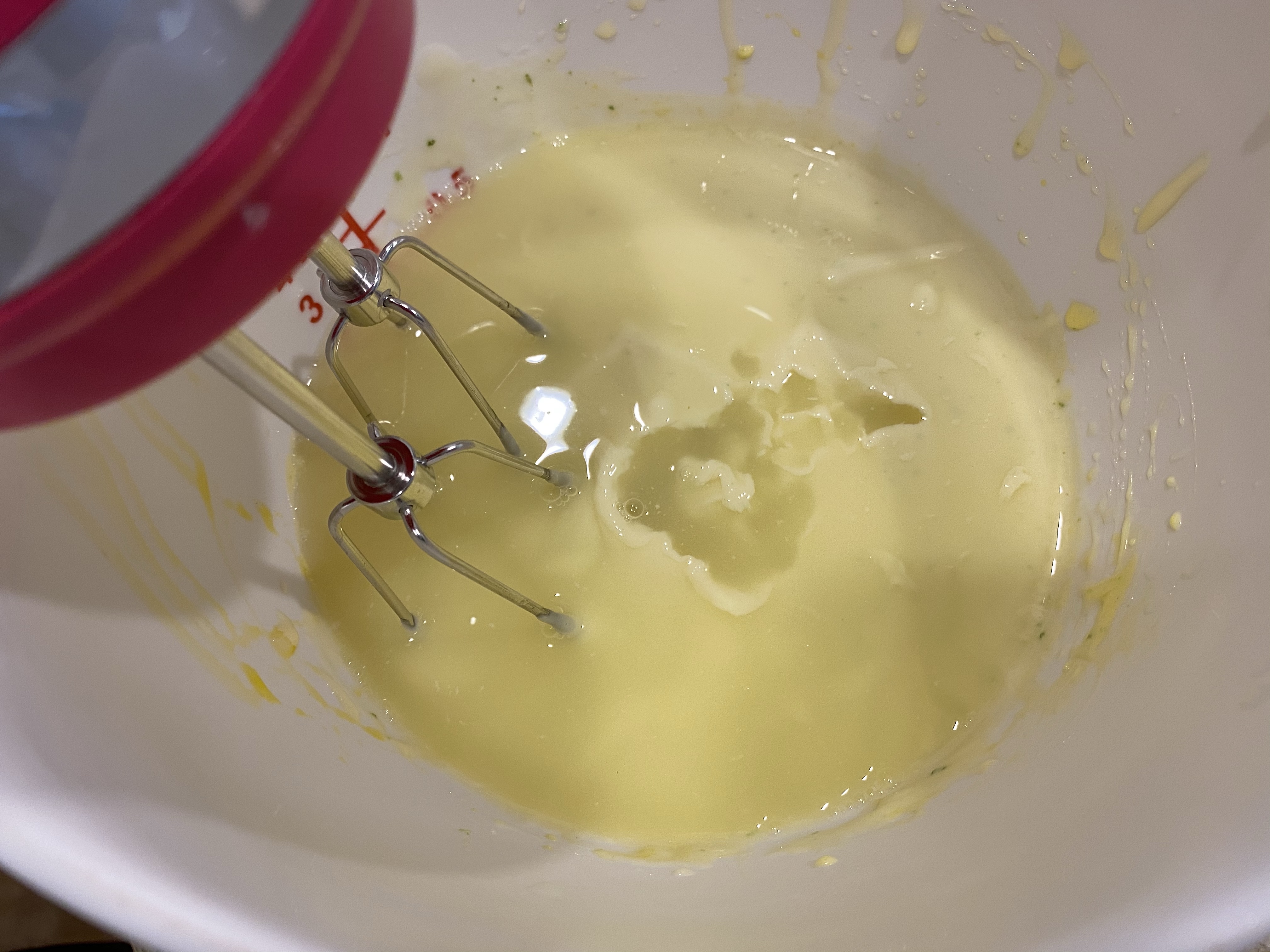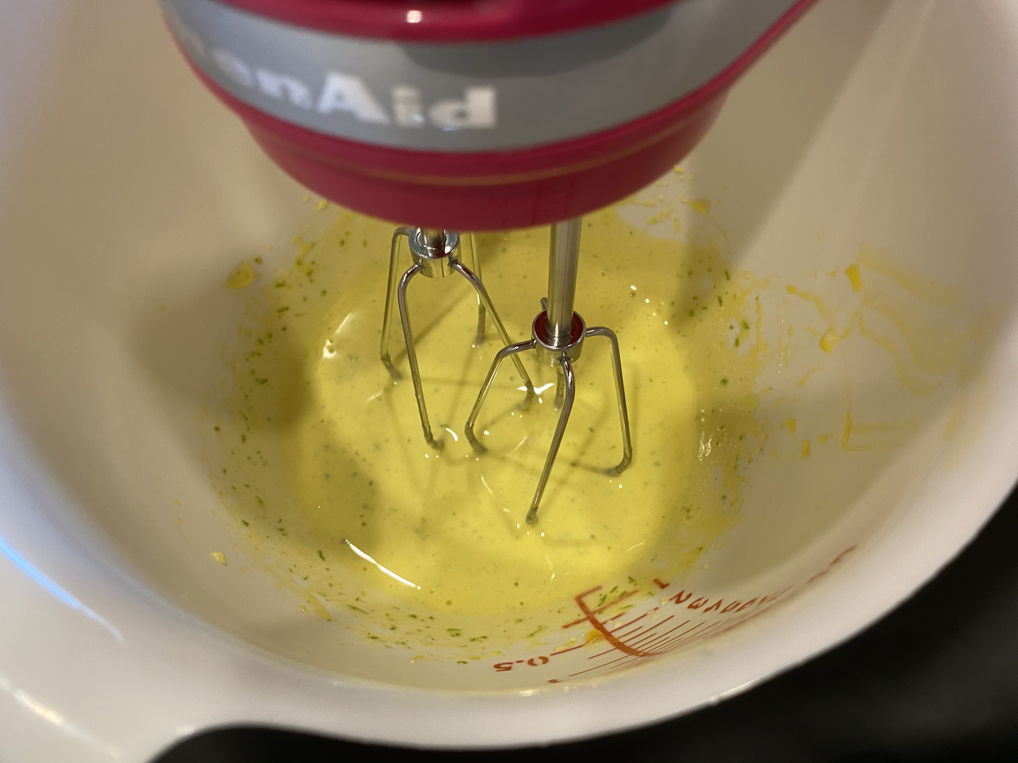 With a mixer, beat your egg yolks and lime zest on high for 5 minutes until it becomes thick.