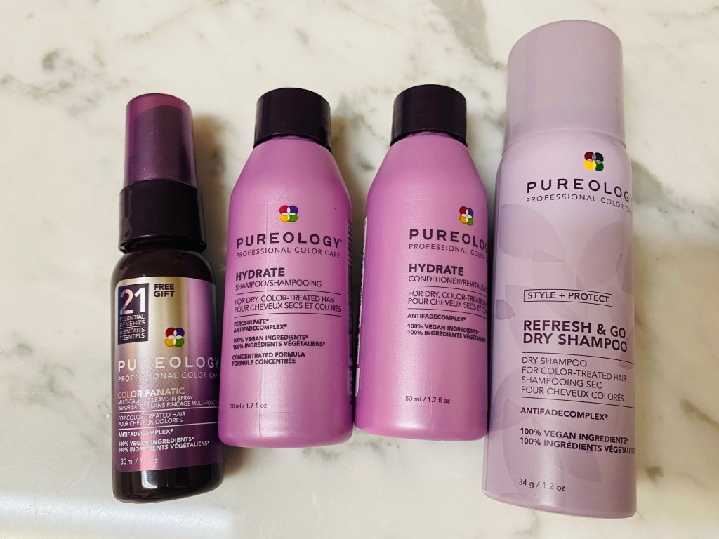 First off is this 4 Piece Hydrate Set from Pureology. This comes with small sizes of the hydrate shampoo and conditioner, the leave in spray with 21 benefits, and the dry shampoo. I have tried everything here, except the dry shampoo, which is what I got the kit for. I didn’t want to commit to a big size, and I love getting the rest of these small sizes too. I love the other three products.