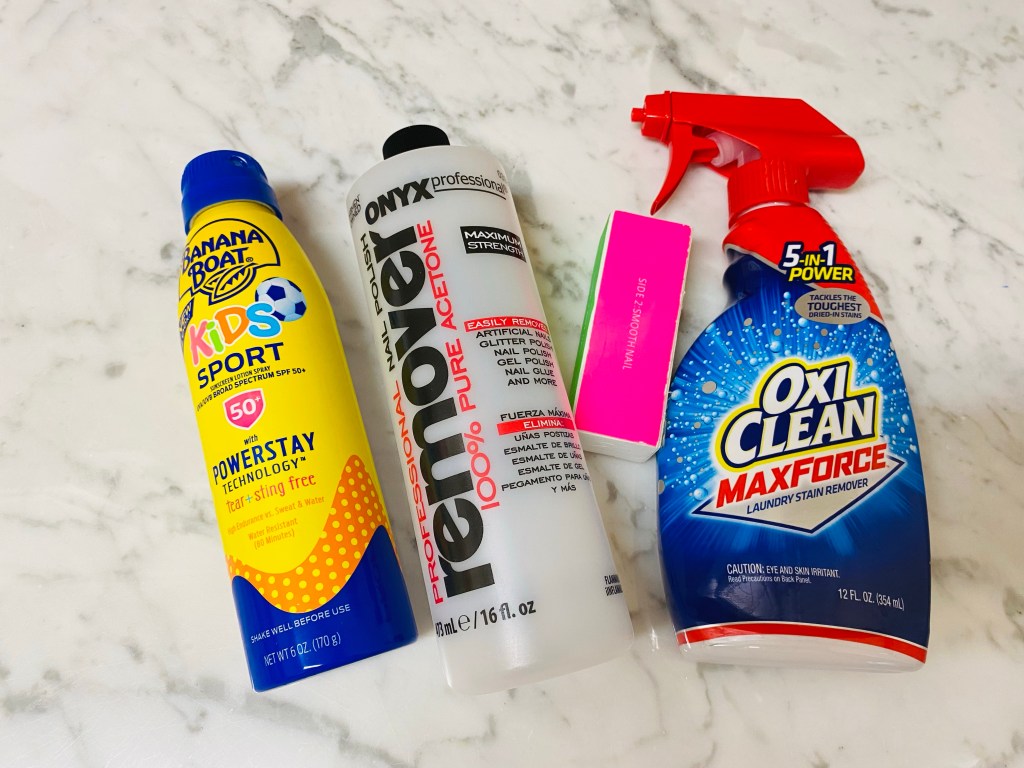 Lastly, Oxyclean Max Force. This is a laundry pre-treater for stains. I have YET to find a stain that this won’t take out. I use this on a daily basis on my girls and husband’s clothes (and mine sometimes!) and it just works. I also like the foam version of this. I spray it on and throw it into the hamper and then let it sit anywhere from a few hours to DAYS, and then throw it in the wash. It has never not worked. They don’t call me the stain master for nothing! Haha