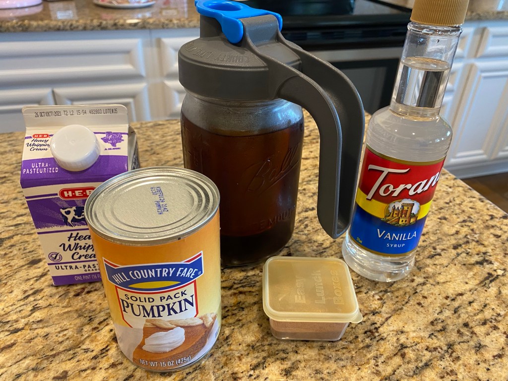 I really do not go to Starbucks very often, it’s pretty expensive and I HATE drinking my calories. Usually when I go, I get iced coffee w nonfat milk, BUT in the fall I always treat myself to a Pumpkin Cream Cold Brew because it is just so delicious. I’ve been trying different recipes to make a dupe for it at home, and I’ve finally found the perfect way that is better than Starbucks!