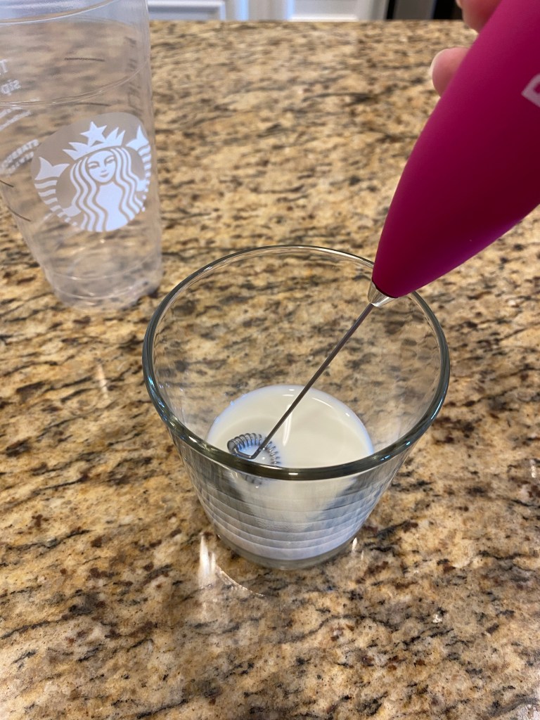 Now froth up your milk! You can use a hand mixer if you don’t have one of these little frothers. This thing comes in so handy!