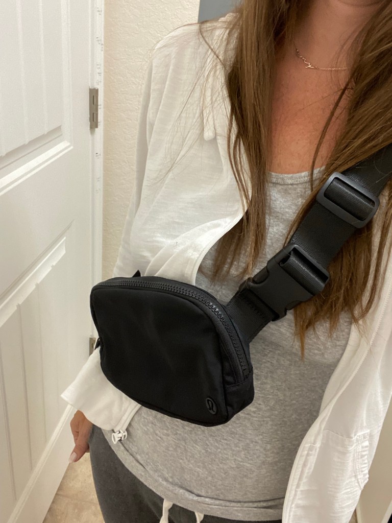 I’m gonna try to link this, but they are super popular right now. I’ve had mine for a year or so, but recently they’ve blown up on social media and everyone has them! The hype is real, though. They are so easy and convenient, they are hands free, and go with any casual outfit. They are especially cute with athleisure, and so roomy! I even did a Whats In My Lululemon Belt Bag post, check it out here!
