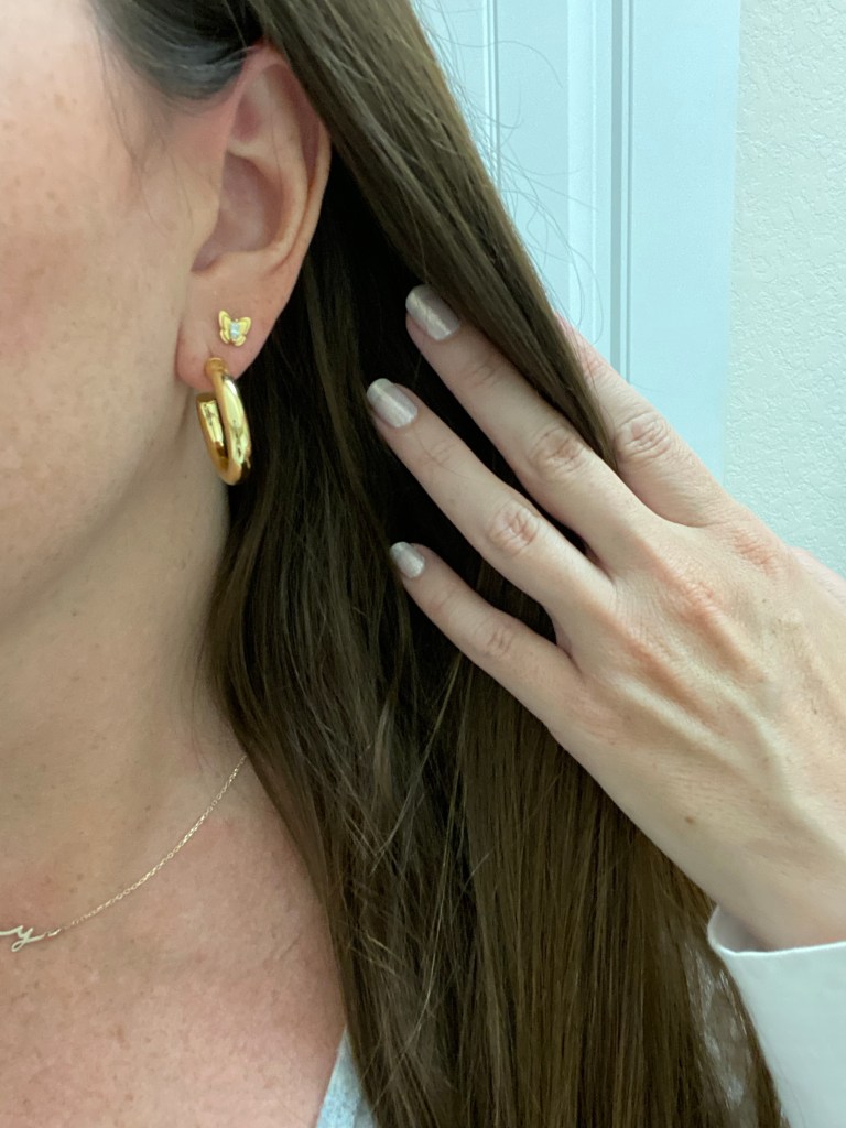 These chunky gold hoops dress up any look and just instantly make you look put together!