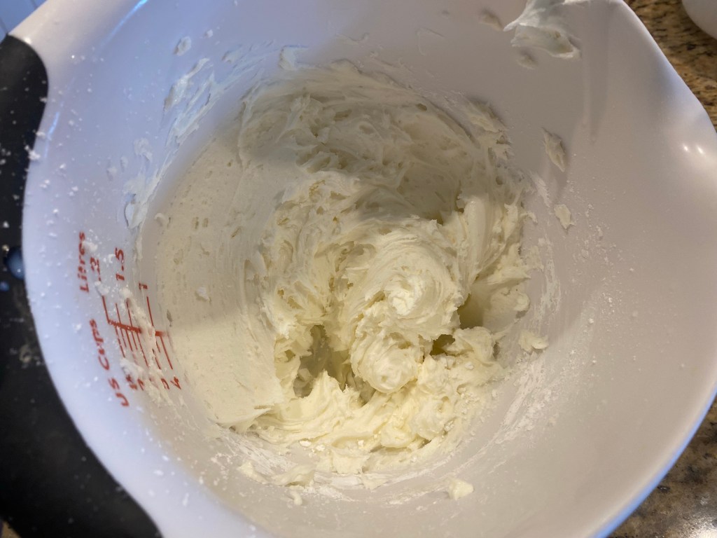 For the icing, cream your butter and sugar together, and then add milk and extract.