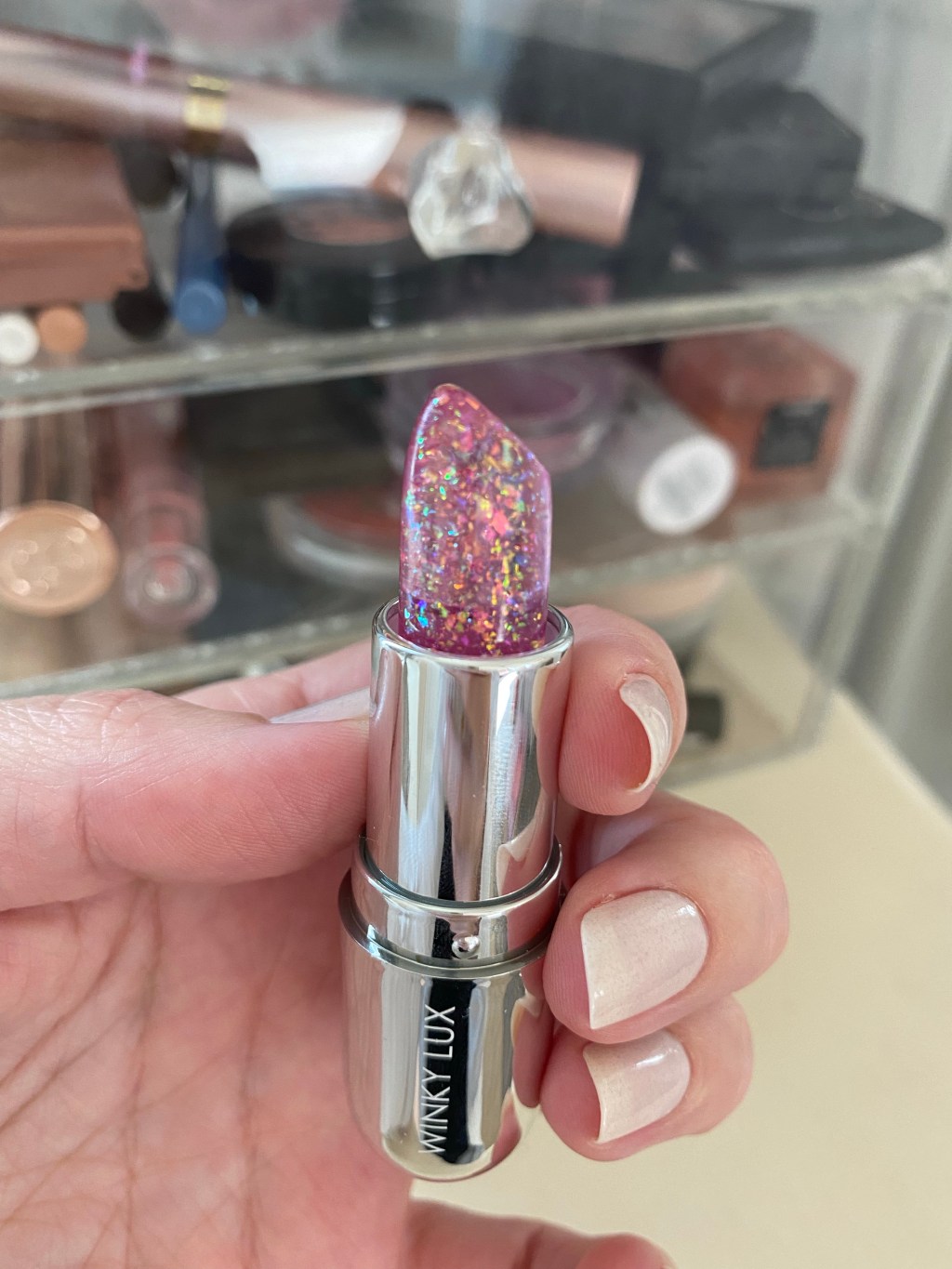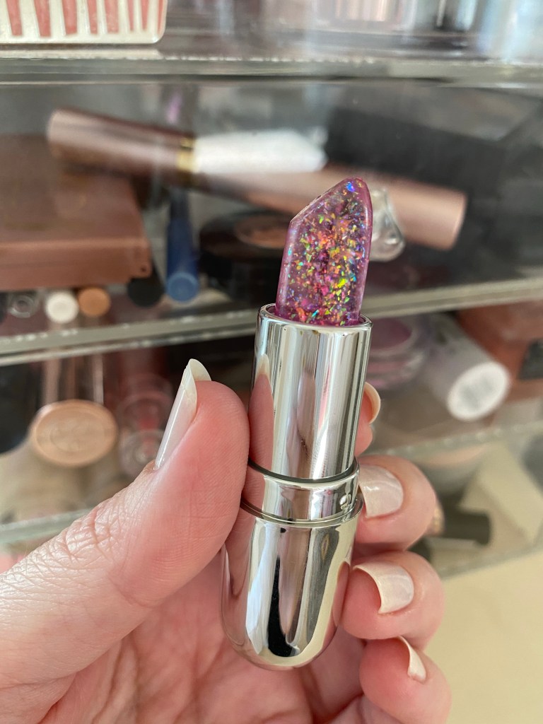 It’s the packaging for me. The packaging for all of the Winky Lux products is so pretty and fancy. It comes in a little silver bullet, and is a sheer purple-y pink with different color sparkles inside. It’s just fun to look at!