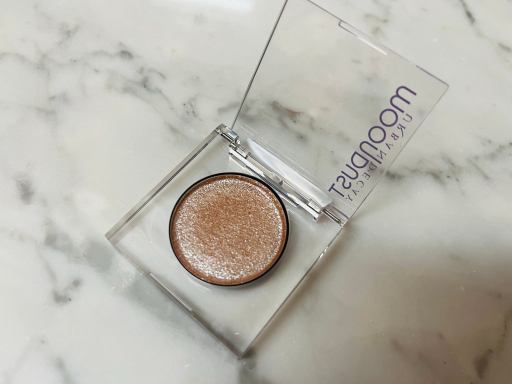 I thought I’d start off with showing you my favorite eyeshadow of the moment (or maybe ever), the Urban Decay Moondust Shadow in Space Cowboy. This champagne gold color is like no other eye shadow I’ve owned. It is so chock full of silvery shimmer, it almost comes off as giving a “wet” look. No chunky glitter, just creamy and glossy looking. It’s giving celestial goddess.