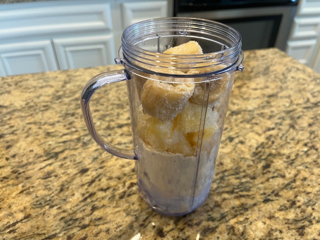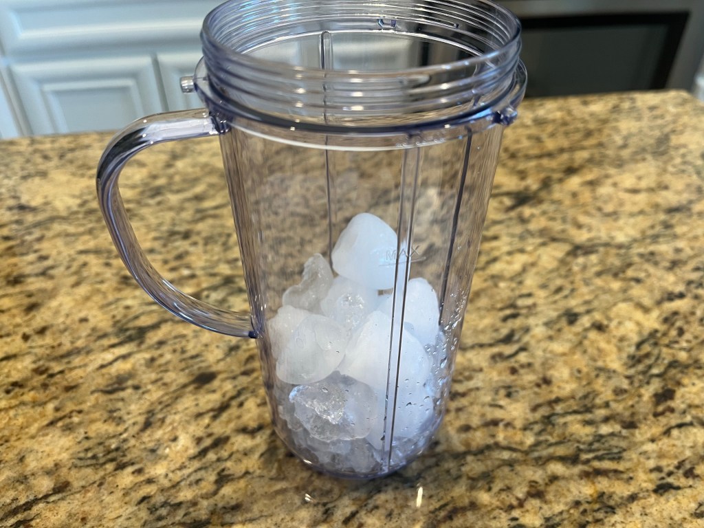 Add some ice to your cup. I am using a 22 oz cup that goes along with my Magic Bullet.