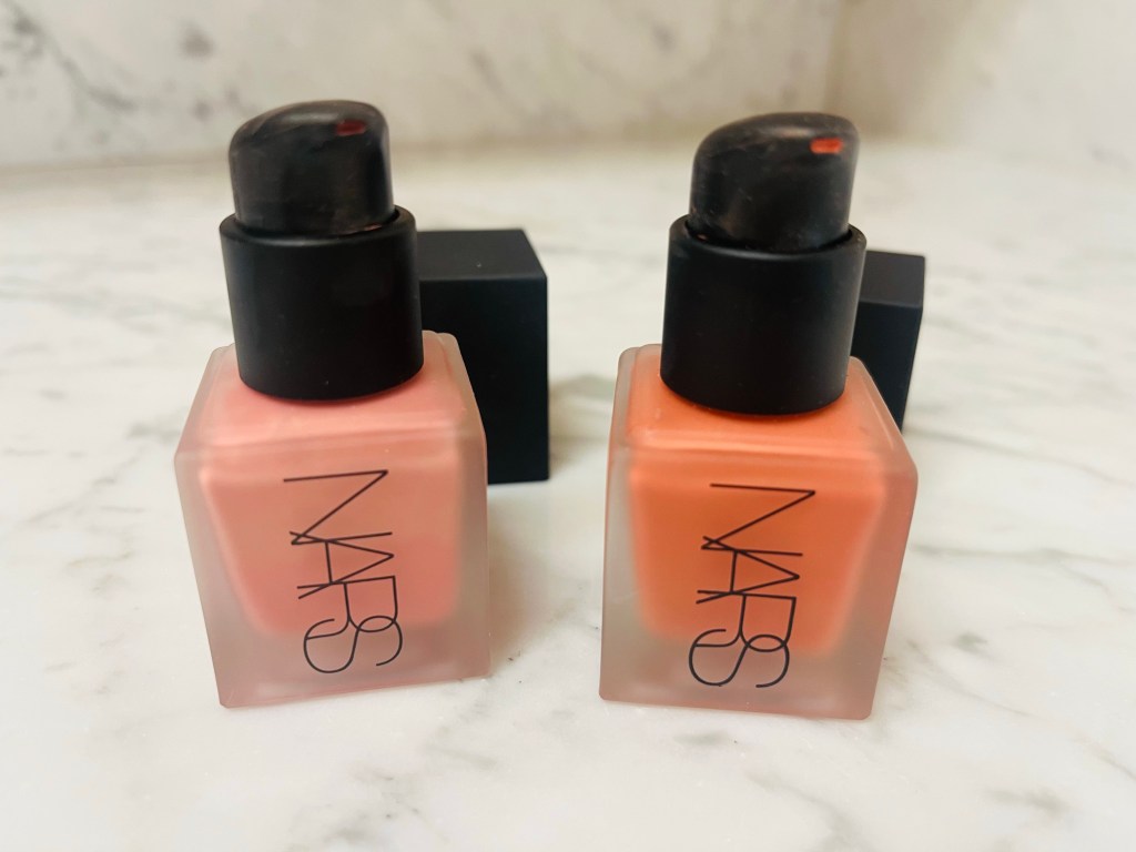 Both of these shades are so pretty and summery. They come in a nice glass bottle with a pump. All you need is one pump for both cheeks, so these will last you forever, since you get 0.5 oz of product. I usually do one pump on a beauty blender or brush, and then apply it to my cheekbones.