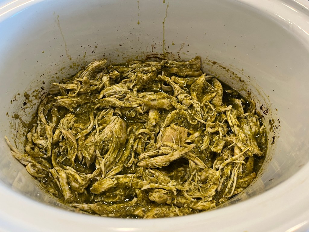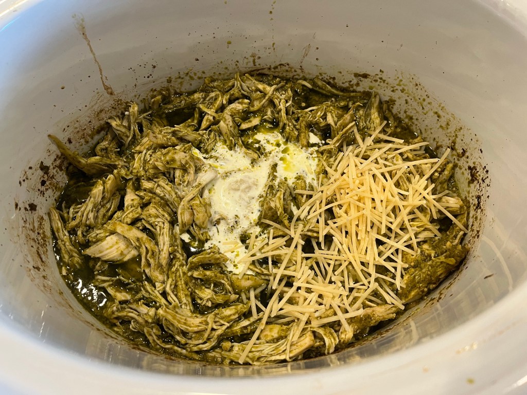 Take your chicken out and shred it up. Put it back in the crockpot for another hour.