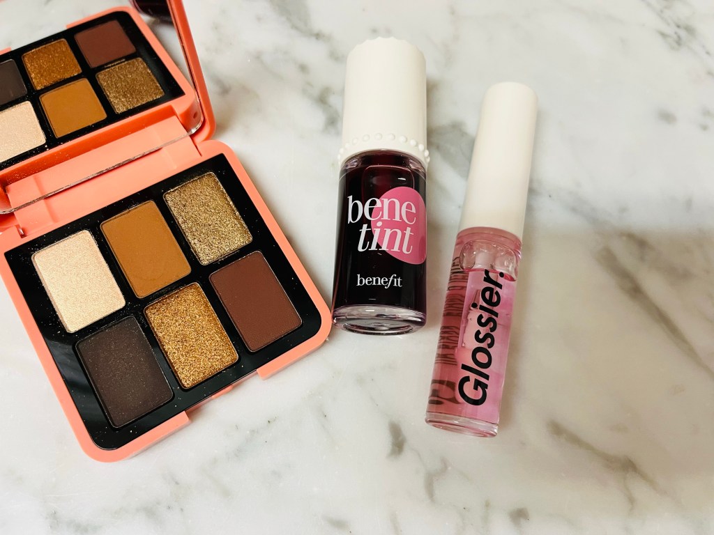 Next is a repurchase, the Benefit Benetint! I forgot how much I love this little lip stain. I know it’s for cheeks and lips, but I only use it for lips…it will immediately stain your cheek before you can blend it out. Haha. I put this on, and it just gives a pretty rosy color to the lips. I finish it off with this Glossier Clear Gloss and it gives a natural flushed look.