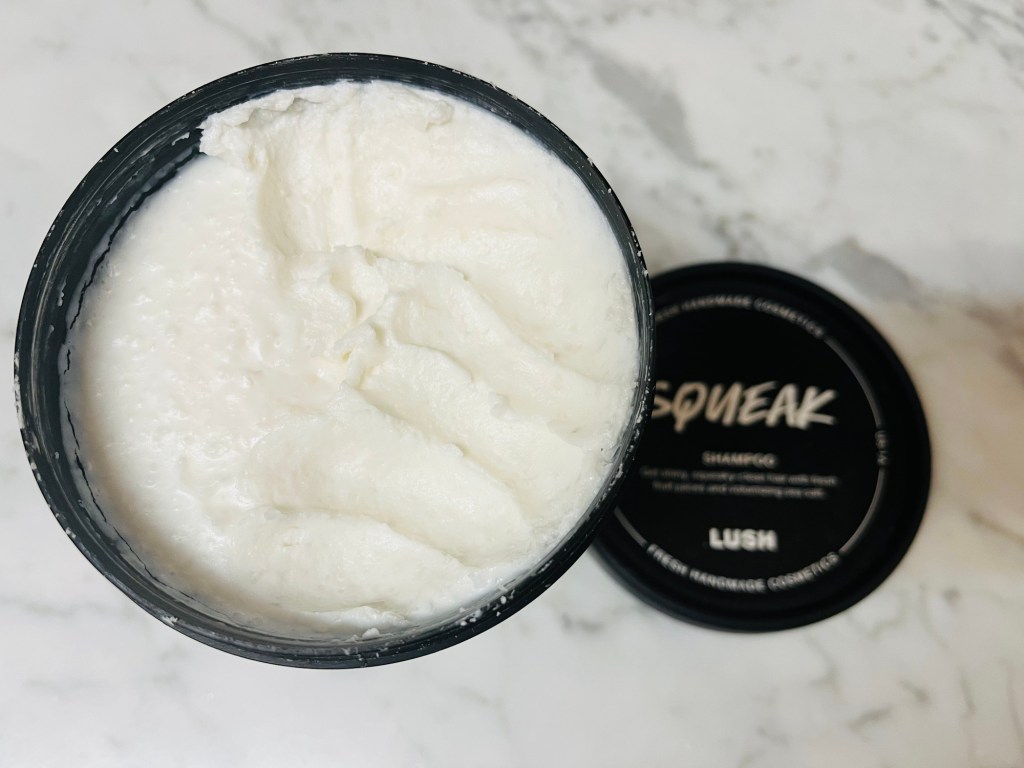 While I was in LUSH, the lady helping me asked me if I had ever tried their new shampoo, Squeak. I told her I hadn’t, and she made me a sample to take home. I love it when they do that!